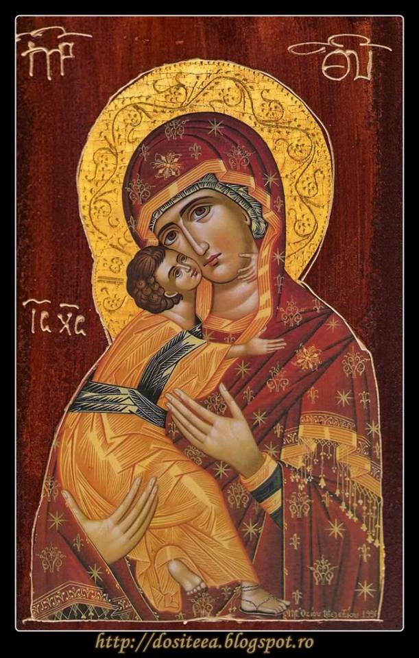 26.08.2013 · din acest moment, icoana a primit numele de „icoana maicii domnului din vladimir" (vladimirskaia). Îndată după această atât de simplă, smerită și duioasă învăluire maternă a preasfintei născătoare de dumnezeu, prietena mea a aflat un loc bun de muncă. Deodată văzu în vis un numte înalt, de pe care coboarau spre el sfinţiţi ierarhi cu toiege de aur. Maica domnului văzând icoana a exclamat: Rugăciune către icoana maicii domnului din vladimir (vladimirskaia) o, preaminunată ocrotitoare cerească a întregii ortodoxii, primeşte şi razele gândurilor … 26.08.2013 · din acest moment, icoana a primit numele de „icoana maicii domnului din vladimir" (vladimirskaia)... Rugăciune către icoana maicii domnului din vladimir (vladimirskaia) o, preaminunată ocrotitoare cerească a întregii ortodoxii, primeşte şi razele gândurilor …